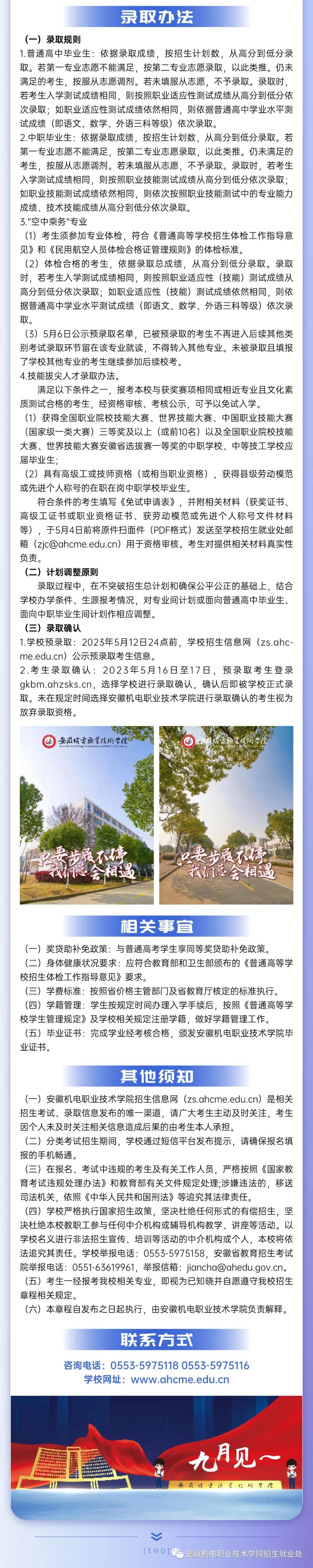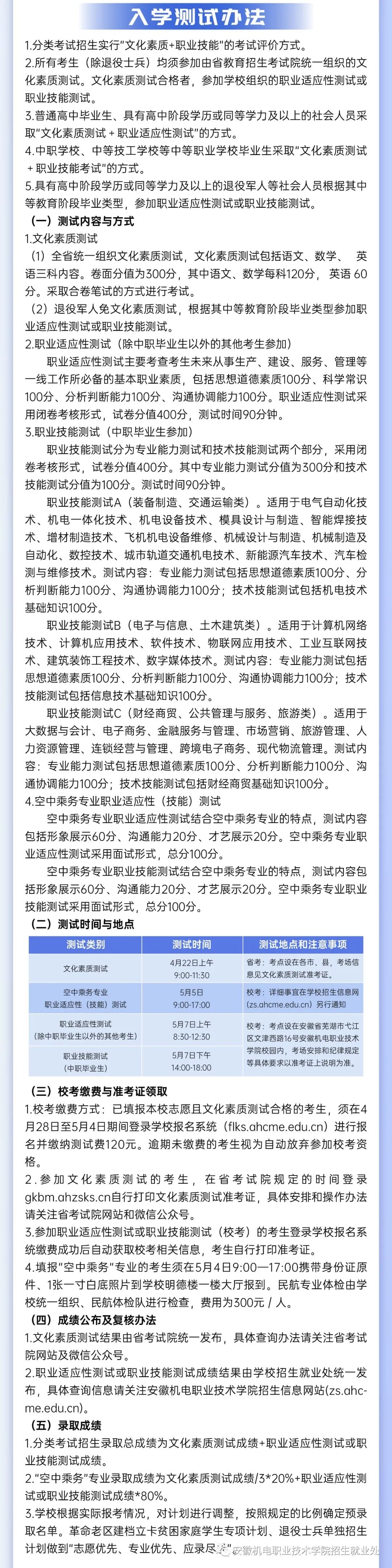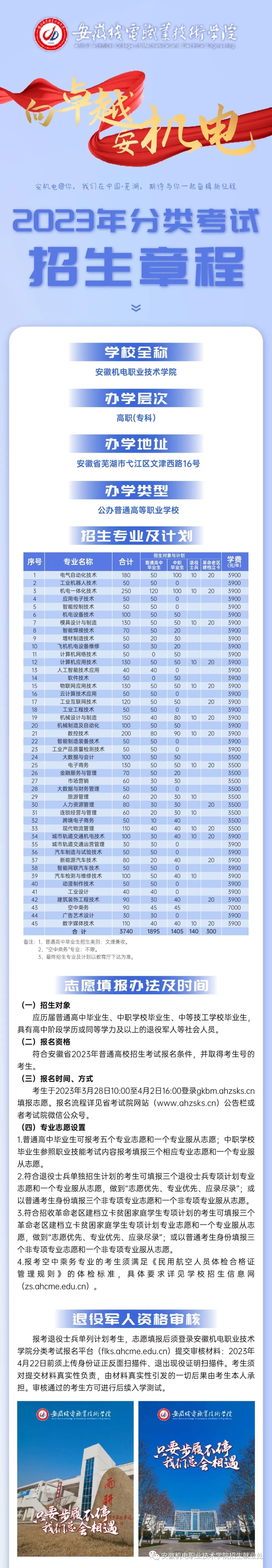 安徽机电职业技术学院2023年分类考试招生章程